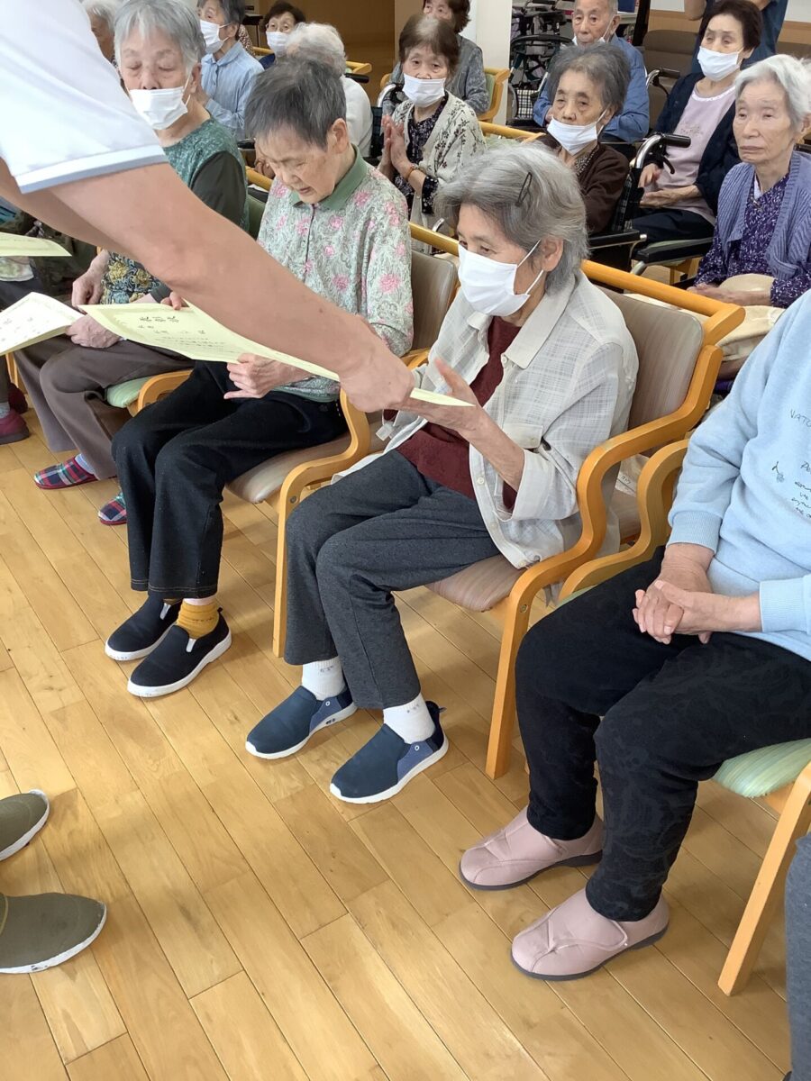 長寿をお祝いして、節目のとなる「古希・傘寿・米寿・卒寿・白寿」のご利用者様に表彰状を授与させていただきました。