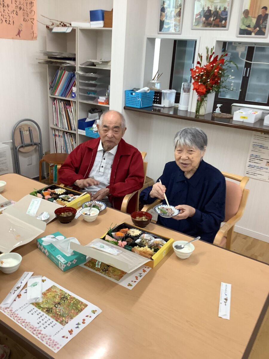 昼食は豪華お弁当を堪能され、お腹いっぱいと満足して下さっていました。 スタッフからお花のプレゼントもあり華やかな雰囲気の中行うことが出来ました。